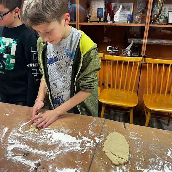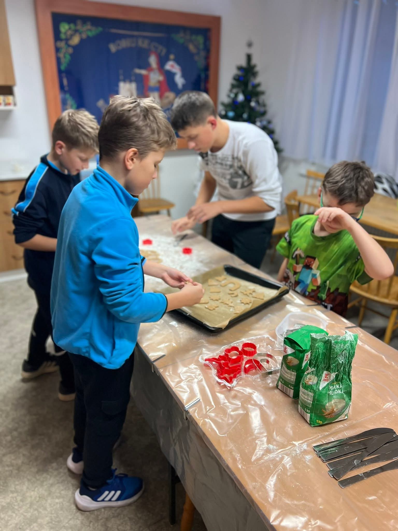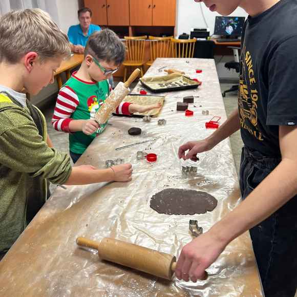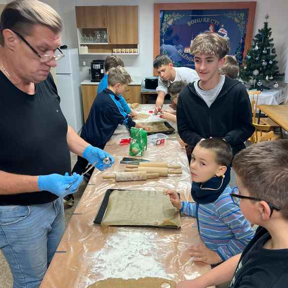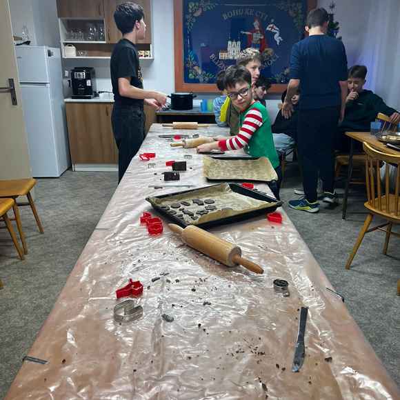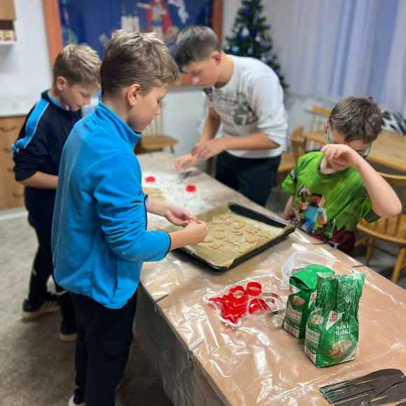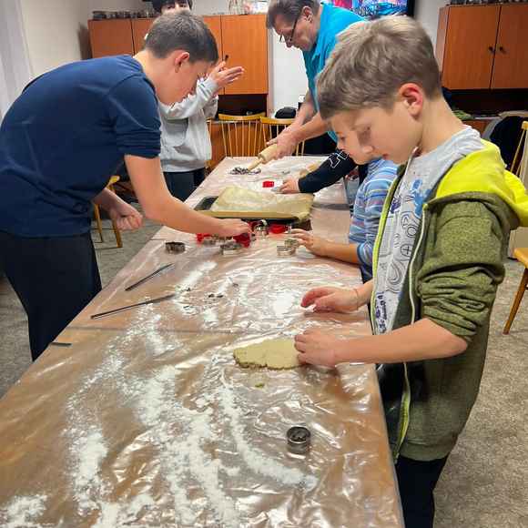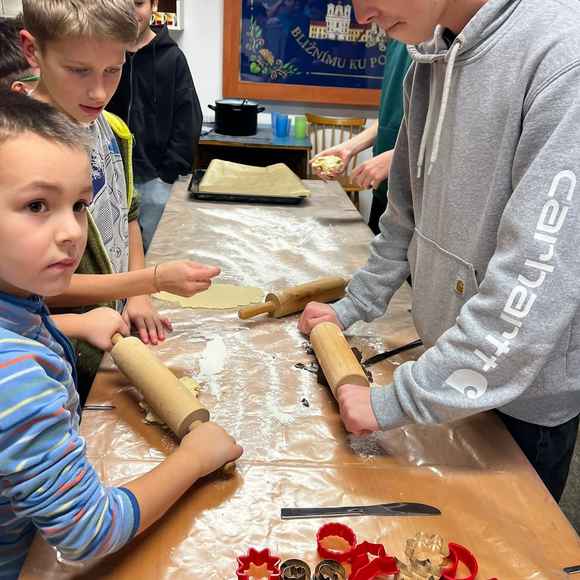 Naše děti rádi pečou cukroví před Vánocemi. My jsme je o to nechteli ochudit ani v našem kroužku a tak jsem s nimi pekli perníčky a linecké.