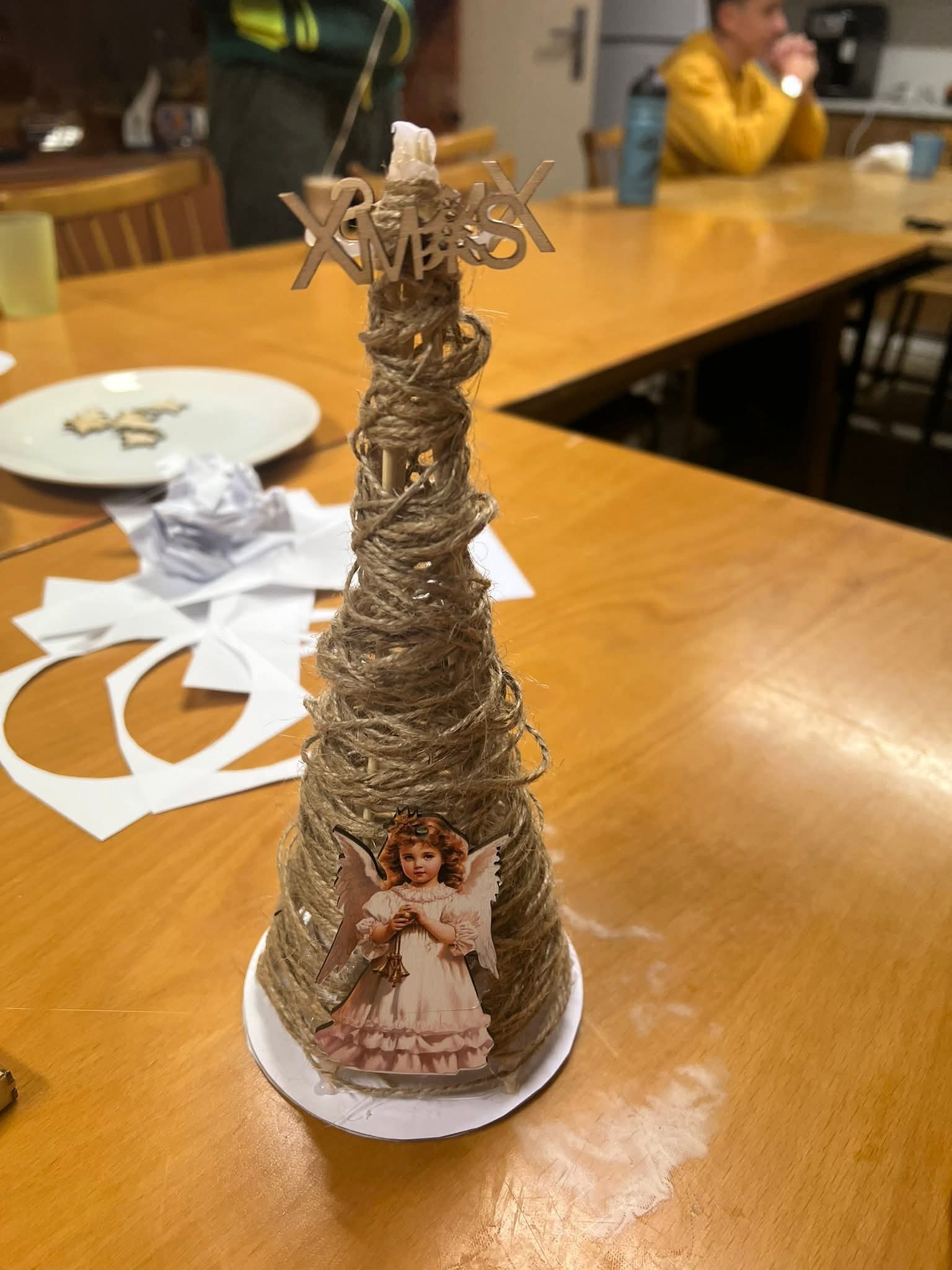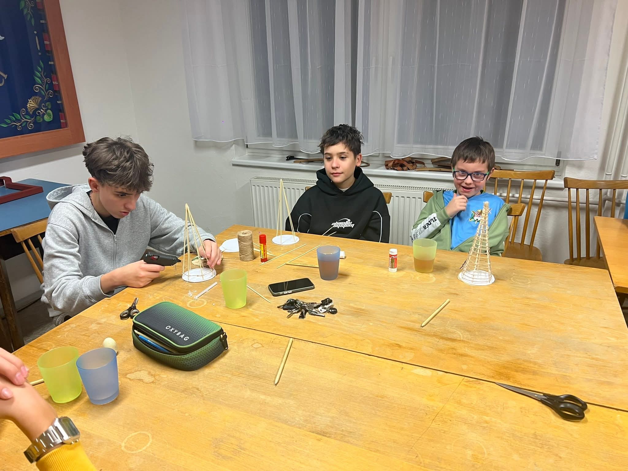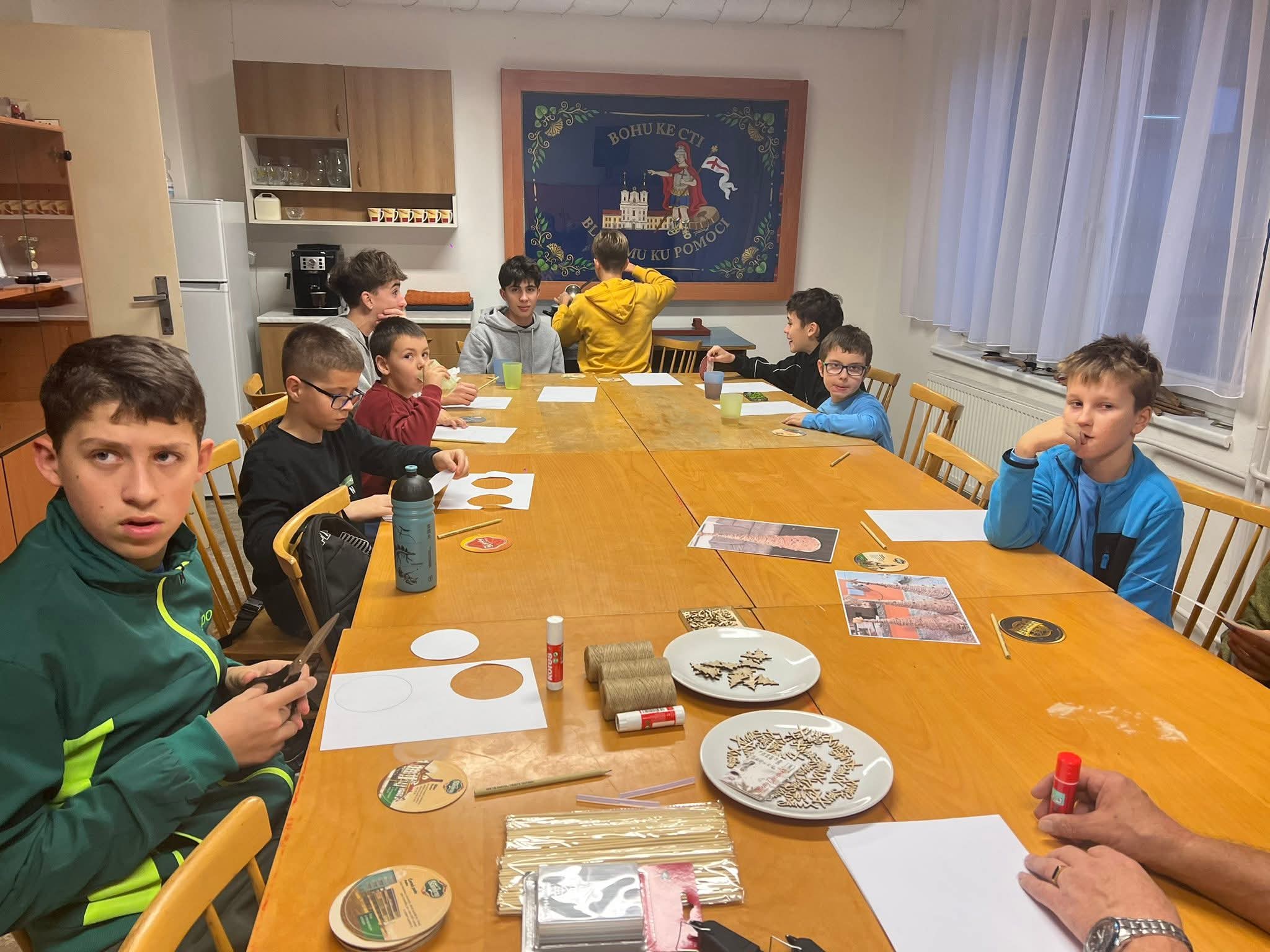 Na další schůzce si děti vyráběli malé vánoční stromečky ze špejlí a provázků, které si pak nazdobily podle fantazie. Tímto jsme si všichni zpříjemnili předvánoční čas.